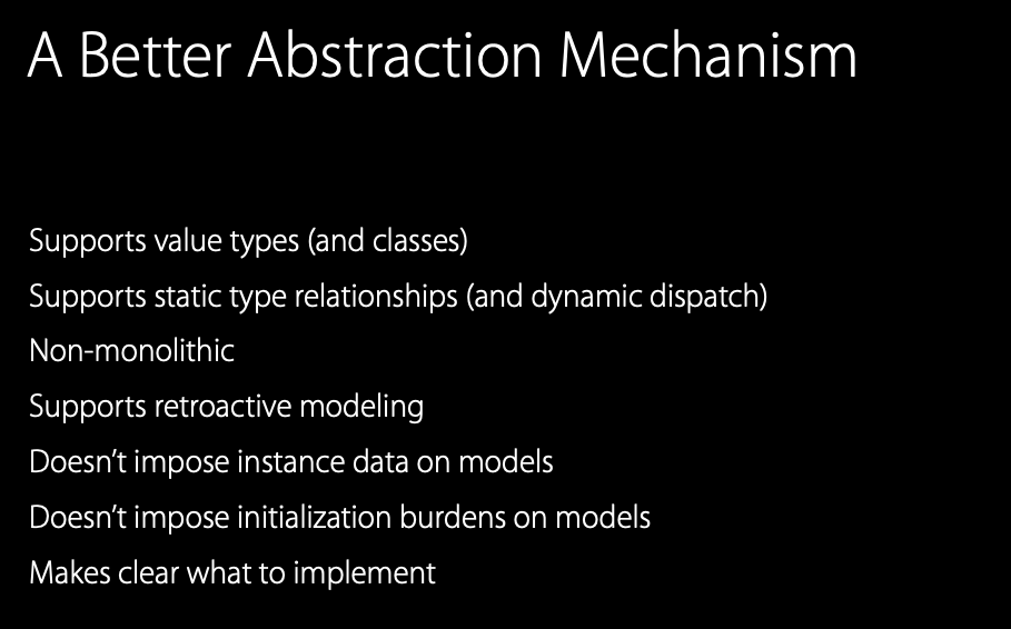 // protocol을 채택하므로 오버라이딩을 할 필요가 없어지고, 오버라이딩을 안하면 class를 사용할 이유가 없다.